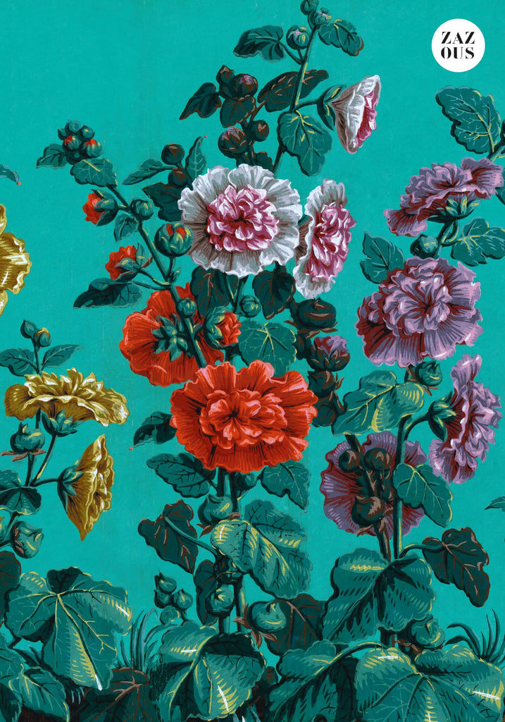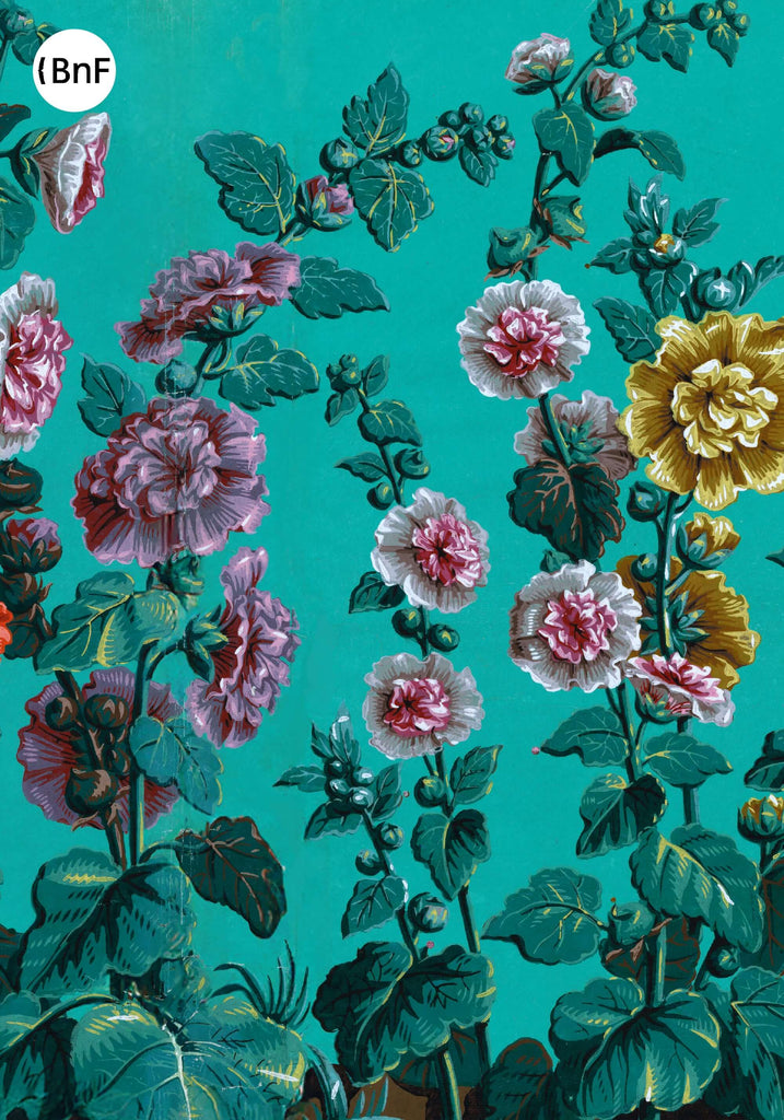 Petit Carnet - Papier peint vert et roses trémières. Legrand.