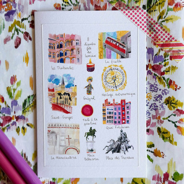 Fleuves et marchés, monuments et jardins, quartiers emblématiques, tout est détaillé et répertorié dans cette série de 8 cartes qui raconte l’art de vivre et la culture de la belle ville de Lyon.