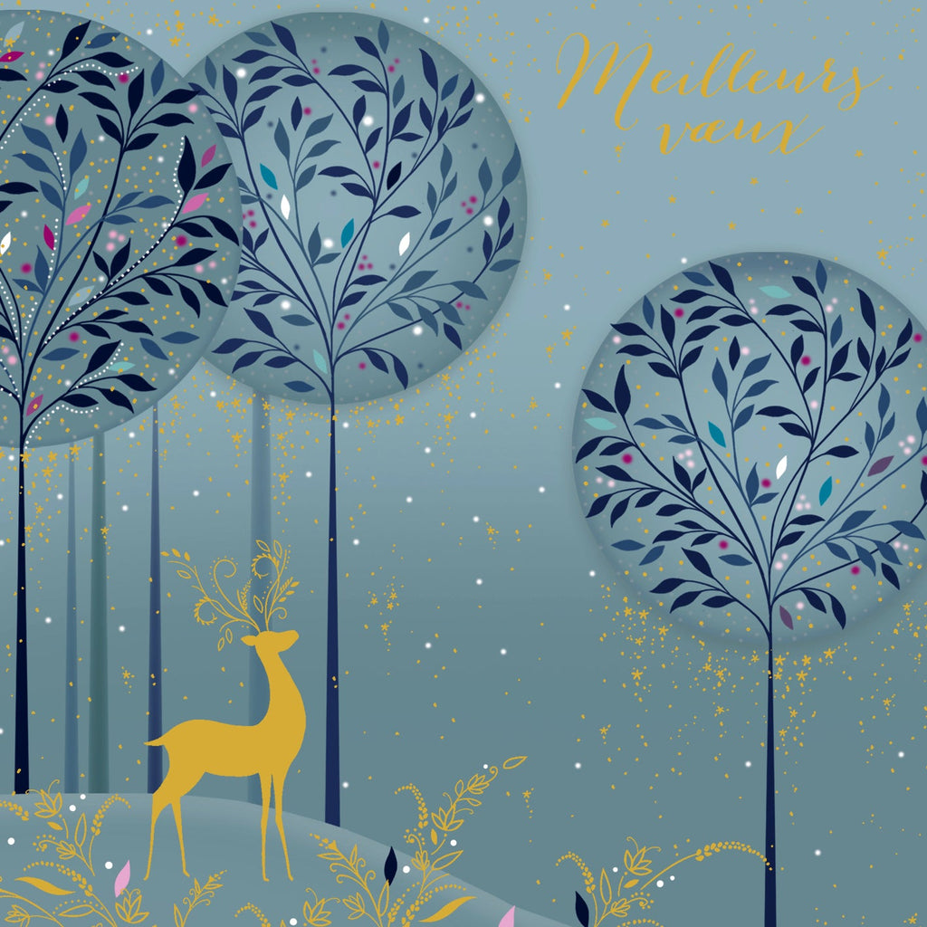 Noël Mix - Cerf et arbres, sur fond bleu clair